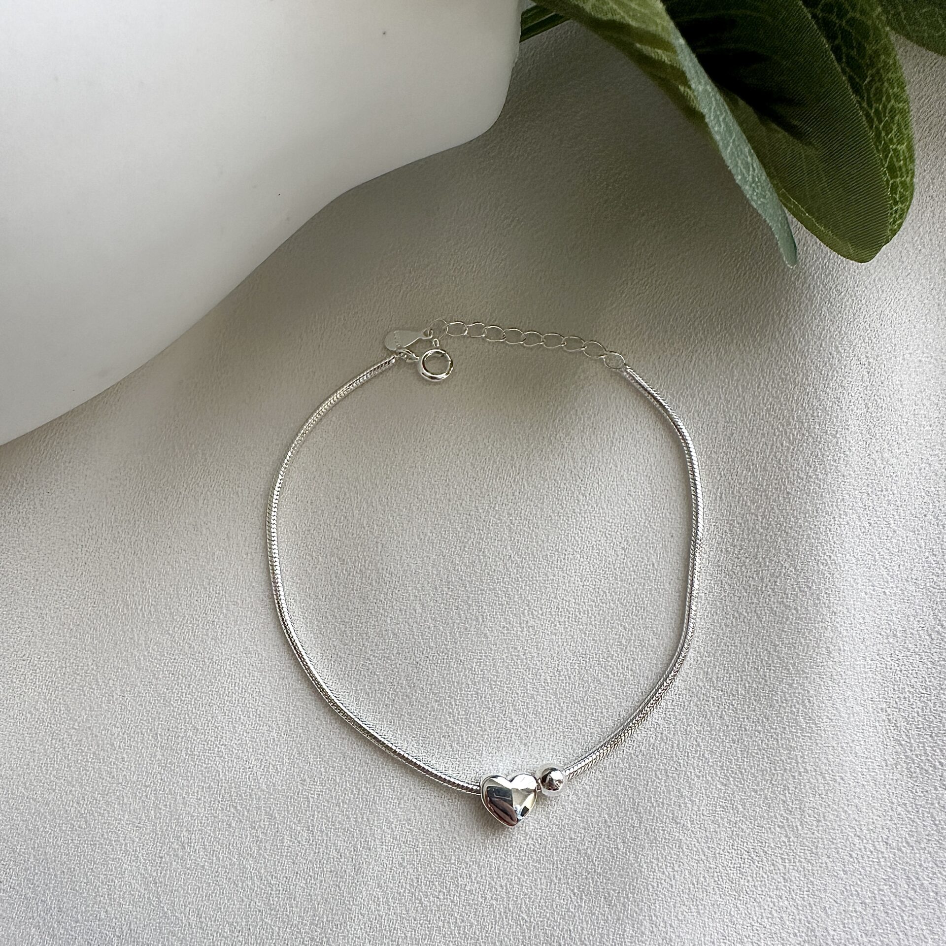 צמיד לב עדין מכסף 925 סטרלינג, בעיצוב נקי ונשי עם תליון לב קטן ונוצץ.
