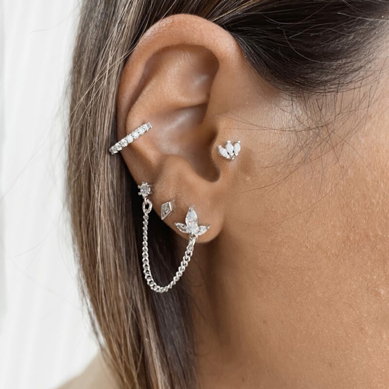 הסט מורכב משילוב ייחודי של עגיל פרח משובץ וזירקון כפול המתאים לשני חורים, עגיל לוטוס עם סגירת פרפר נוחה ובטוחה, עגיל אדל דלתון אלגנטי עם סגירת פרפר, וכן עגיל דמוי הליקס הנתפס על האוזן ללא צורך בחור נוסף.