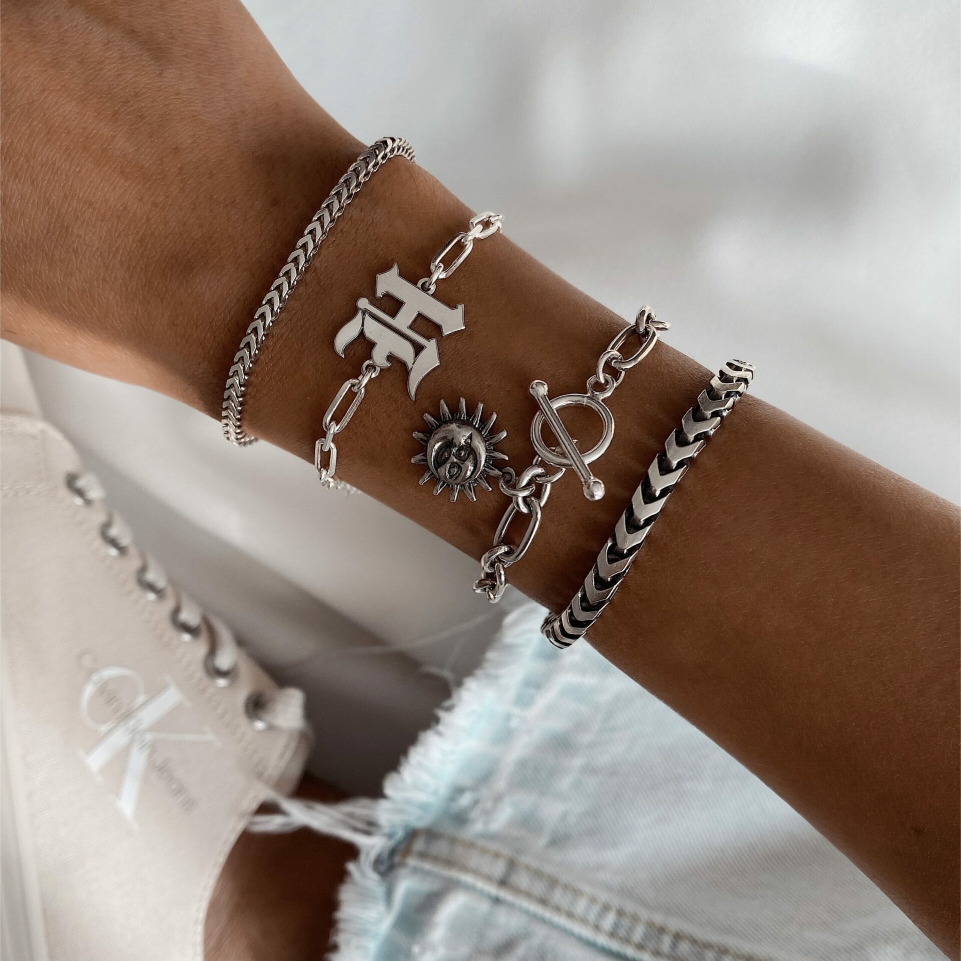 צמיד אות גותית כסף אמיתי 925 עם בחירת אות לבחירתך.