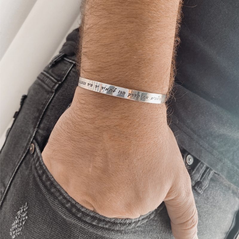 צמיד קשיח קלאסי עם חריטה אישית לפי בחירה עשוי כסף אמיתי 925 ניתן לעשות עם שמות וסמלים.