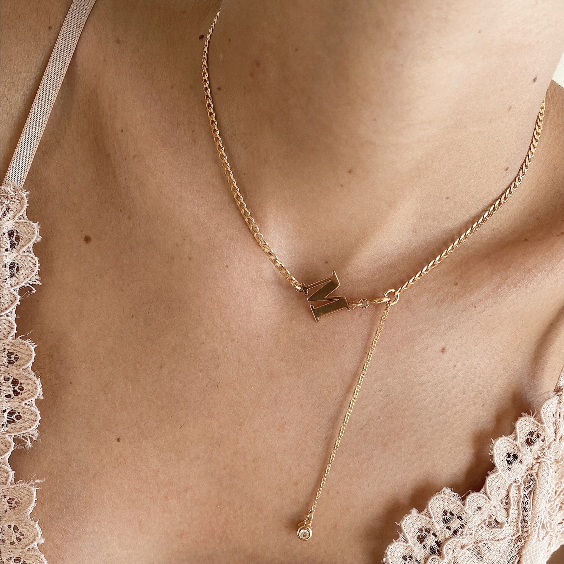 שרשרת פרננדה מיני היא שרשרת עניבה עם אות לבחירה אישית בשילוב זרקון נופל לגימור מושלם.