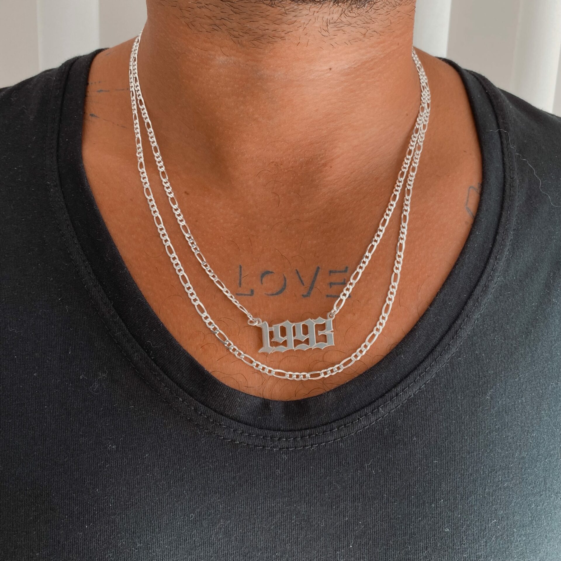 שרשרת שנתון עם מספר שנת הלידה שלך או של קרובייך בעיצוב אותיות גותיות, העשויה מכסף אמיתי 925 בשילוב שרשרת מושלמת שמתאימה לכל לוק.